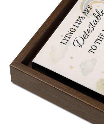 – The framed canvases with brown and black frames have a black inside around the canvas, and the canvases with white frames have a white inside around the canvas.
