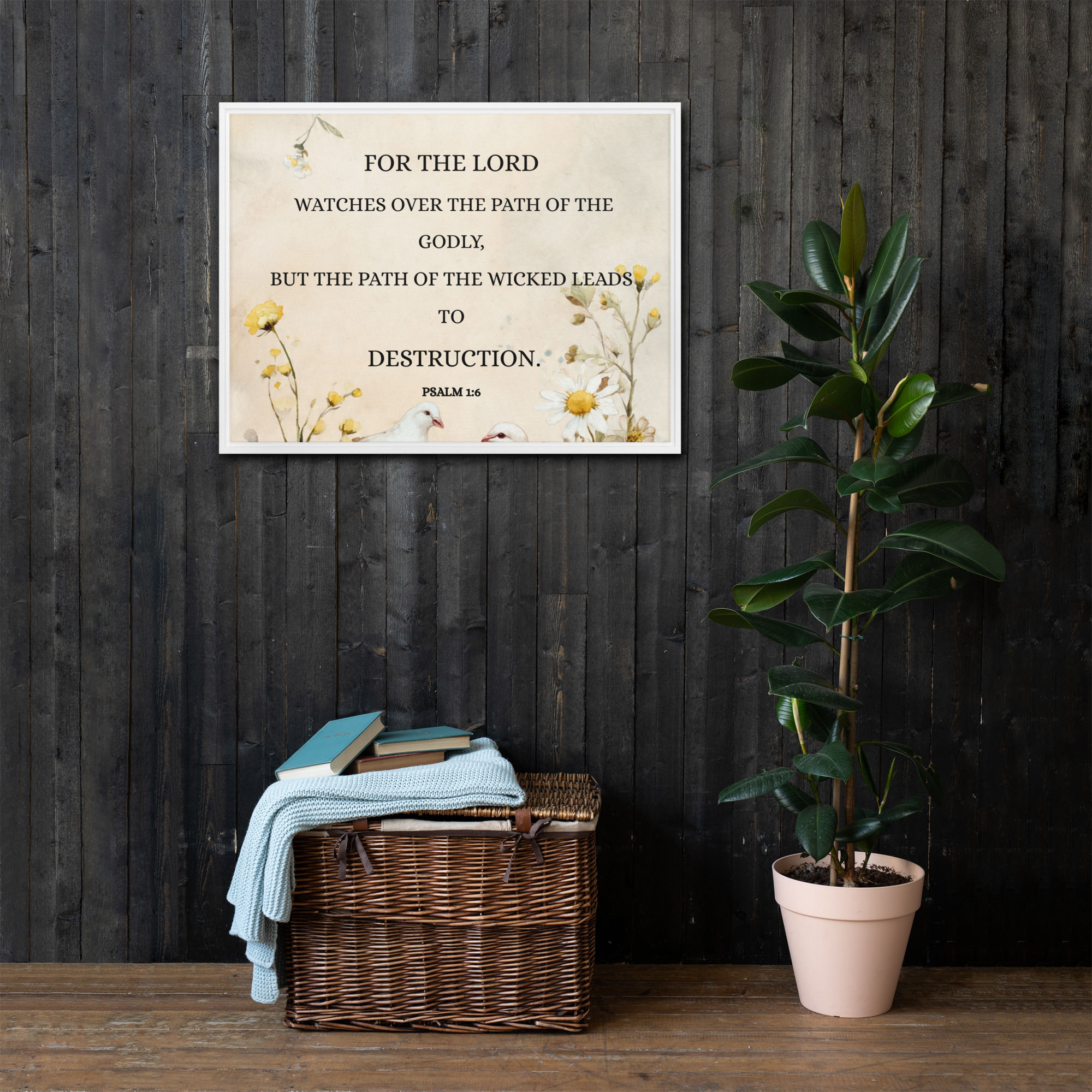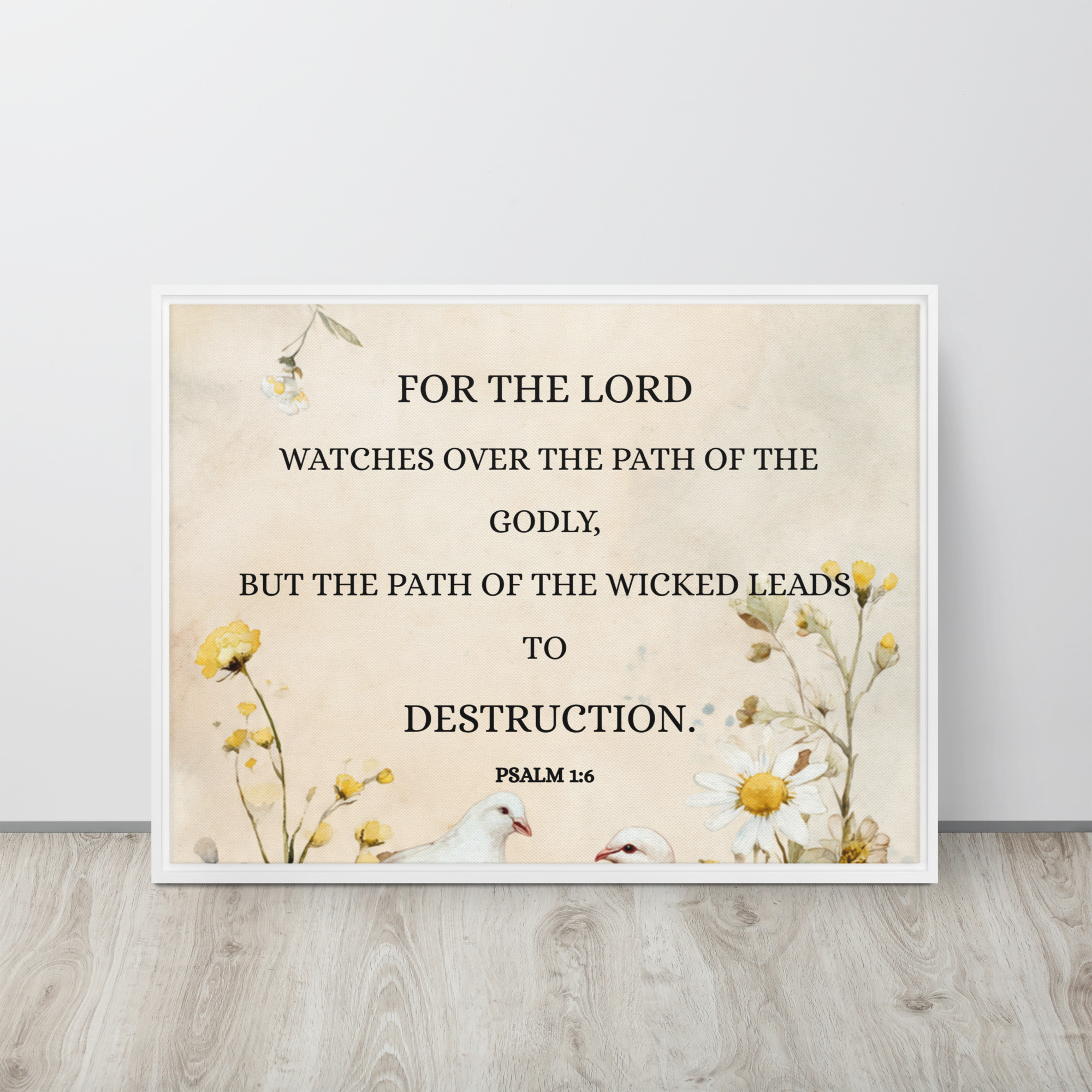 Christian Framed Canvas Wall Art Living Room Decor – Bible Verse Book of Psalm 1:6 Print – “God watches ways of righteous”.. – Floral Scripture Canvas, Faith Home Decor, Inspirational Religious Wall Art