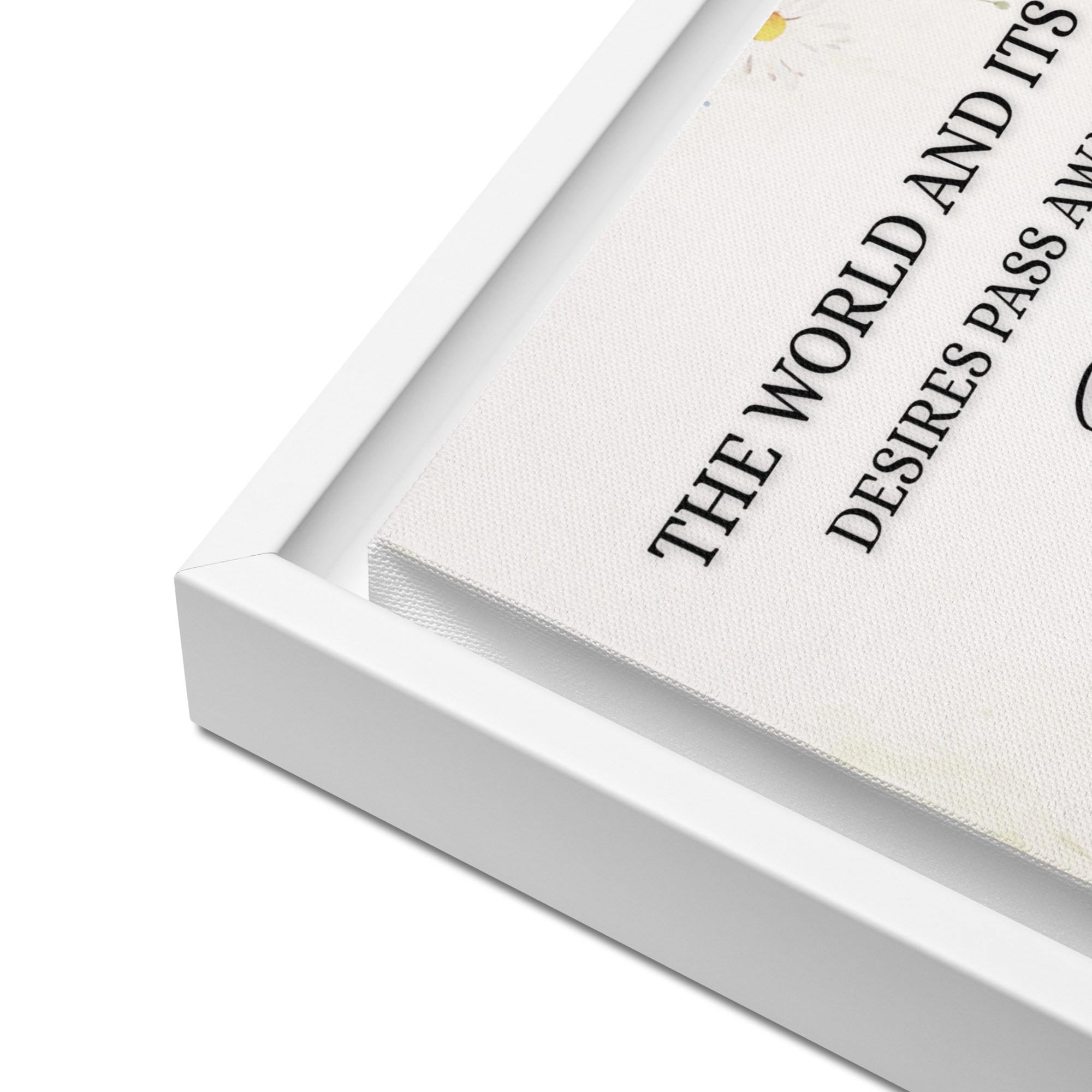 – The framed canvases with brown and black frames have a black inside around the canvas, and the canvases with white frames have a white inside around the canvas.