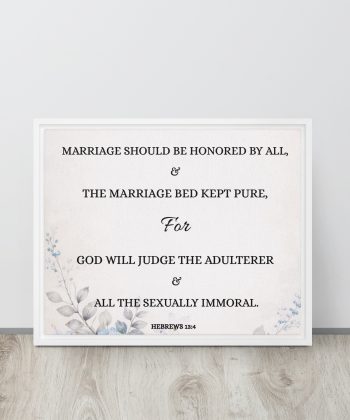 Be the first to review “Christian Framed Canvas Bedroom Wall Art – Hebrews 13:4 Scripture Canvas | Marriage Bible Verse Print | Faith-Based Couple Gift | Neutral Aesthetic Christian Decor”