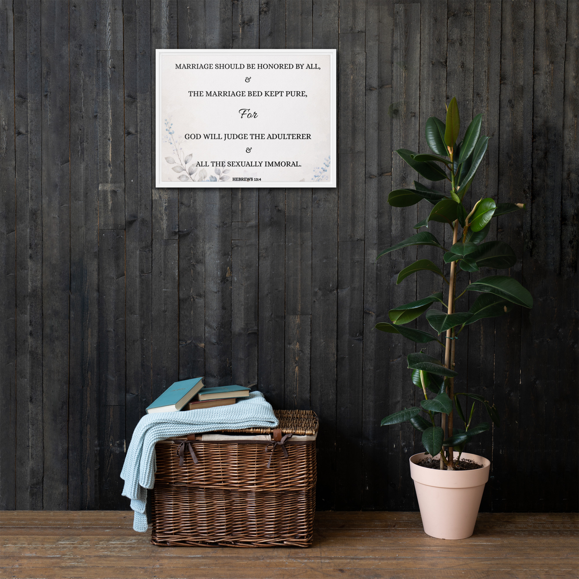 Christian Framed Canvas Bedroom Wall Art – Hebrews 13:4 Scripture Canvas | Marriage Bible Verse Print | Faith-Based Couple Gift | Neutral Aesthetic Christian Decor