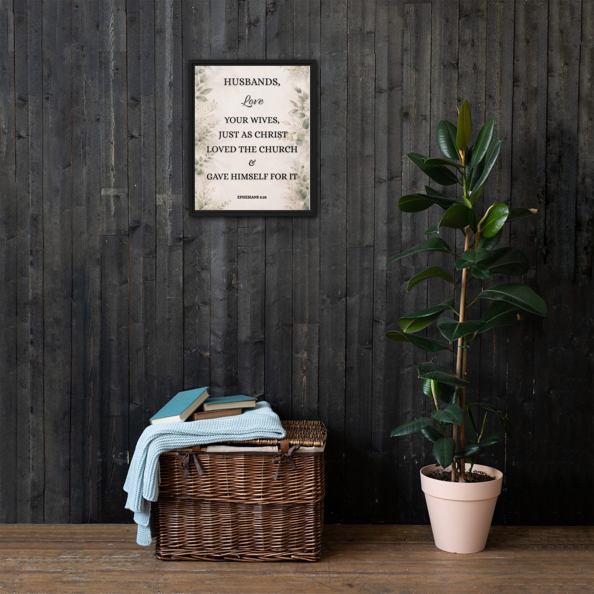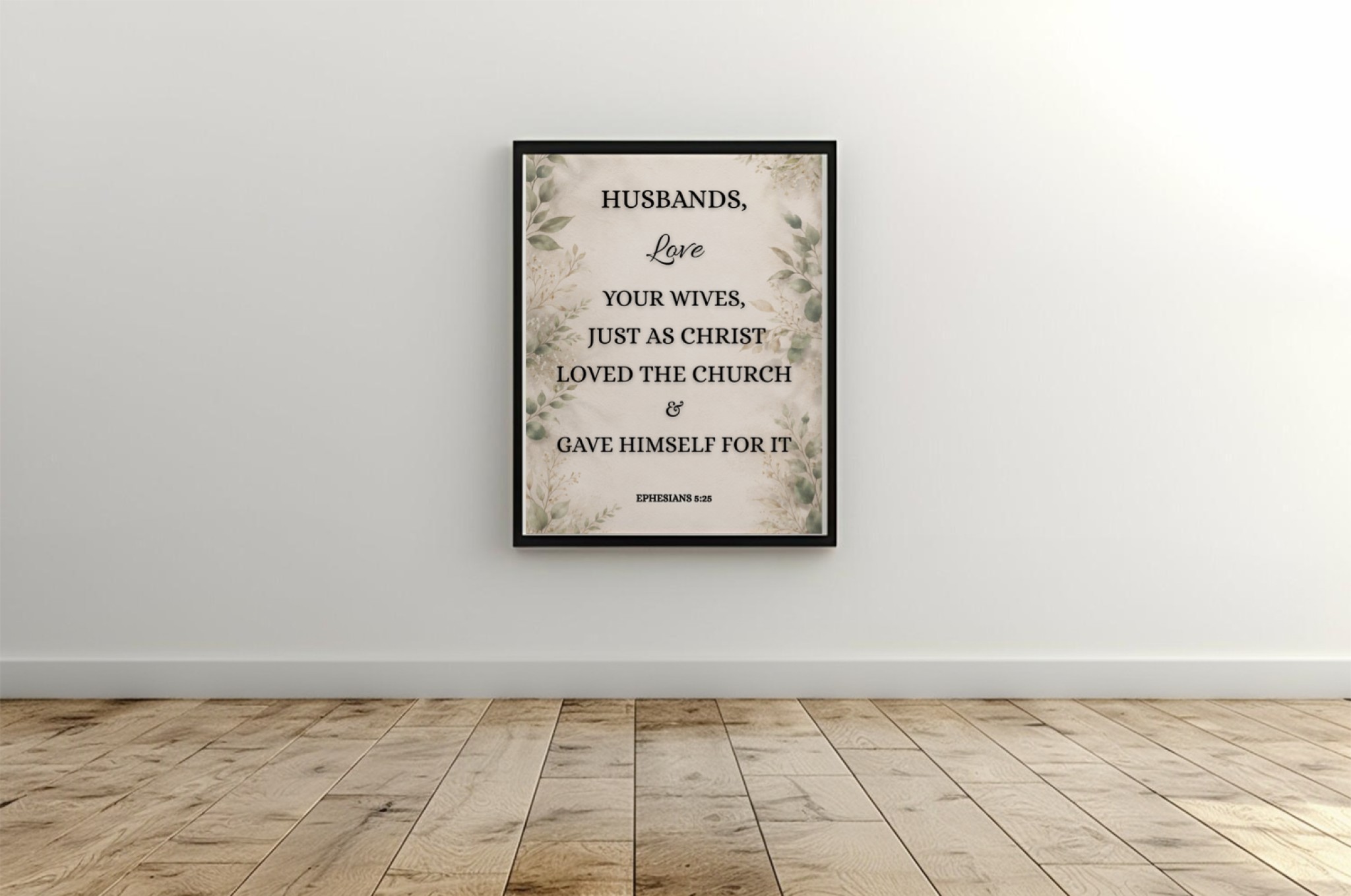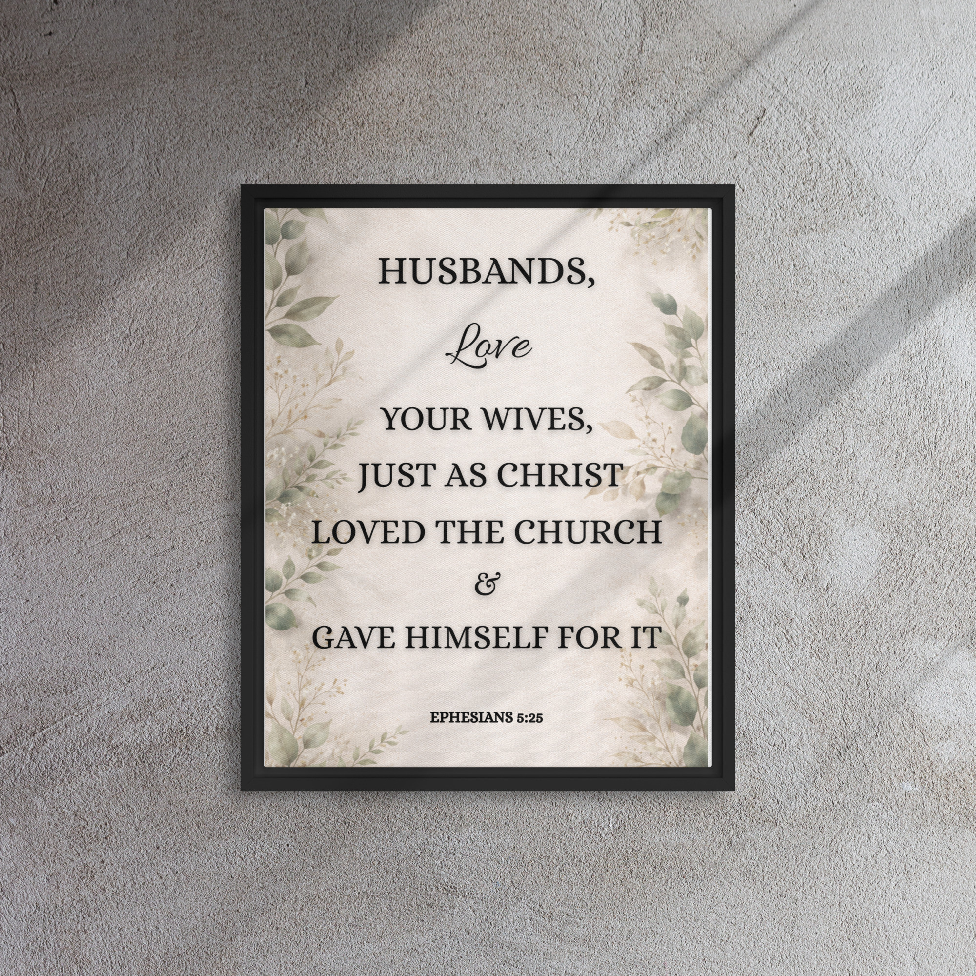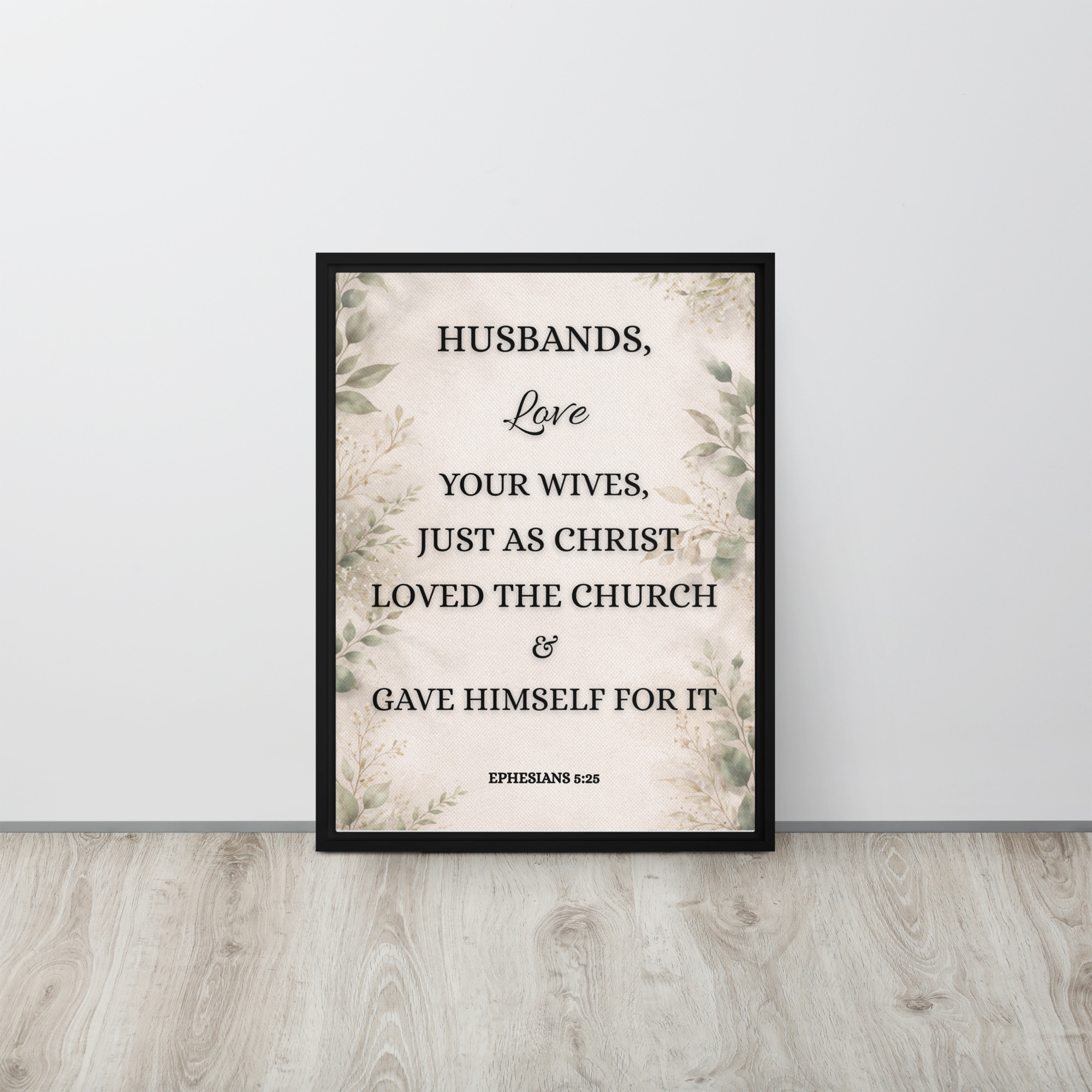 Christian Framed Canvas Bedroom Wall Art – Ephesians 5:25 Scripture Canvas | Marriage Bible Verse Print | Faith-Based Couple Gift | Neutral Aesthetic Christian Decor