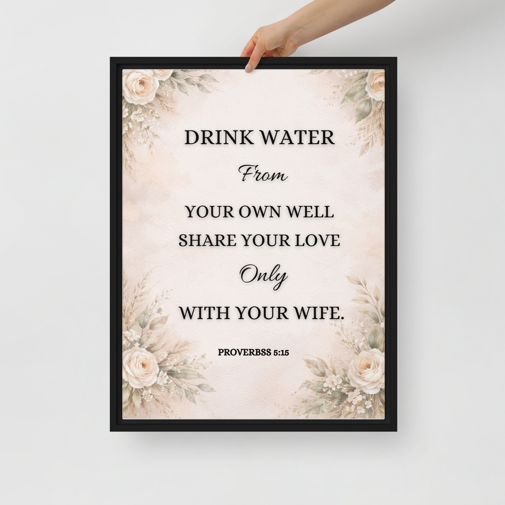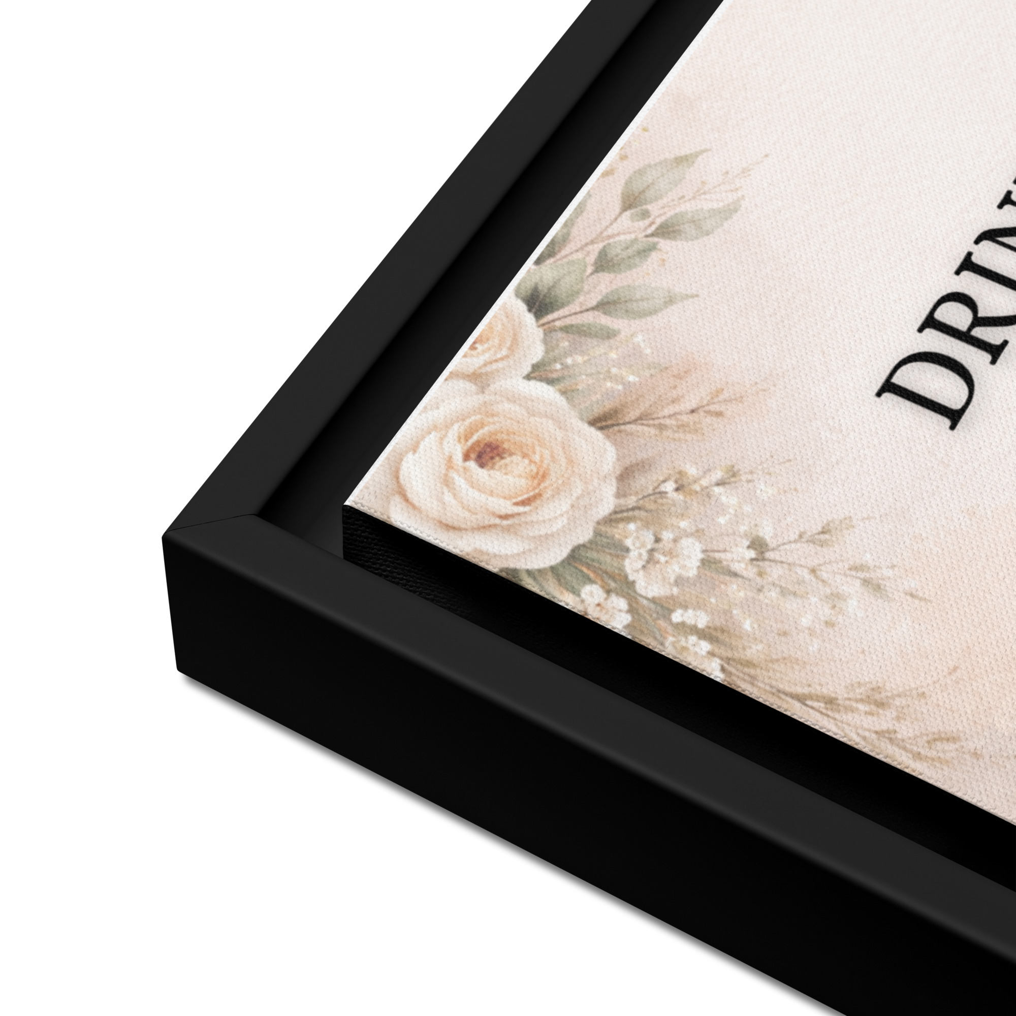 – The framed canvases with brown and black frames have a black inside around the canvas, and the canvases with white frames have a white inside around the canvas.
