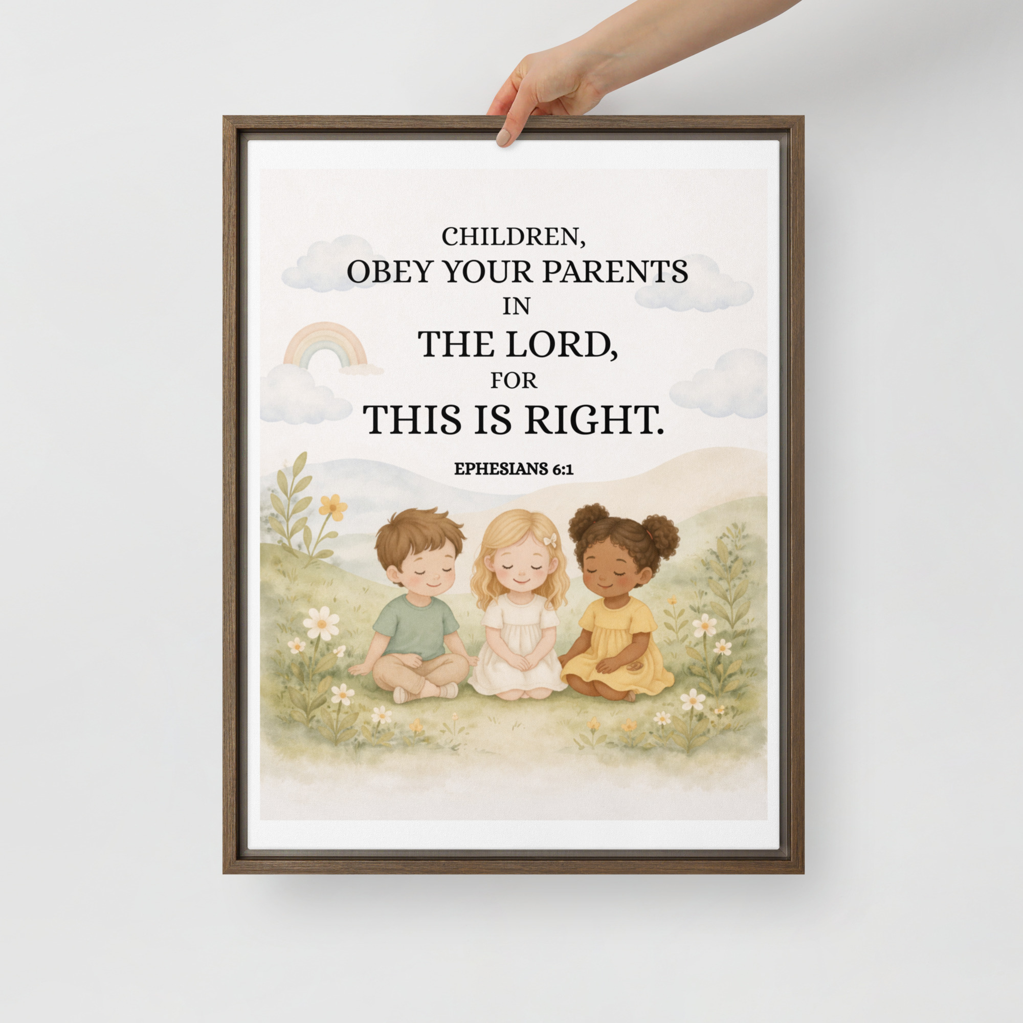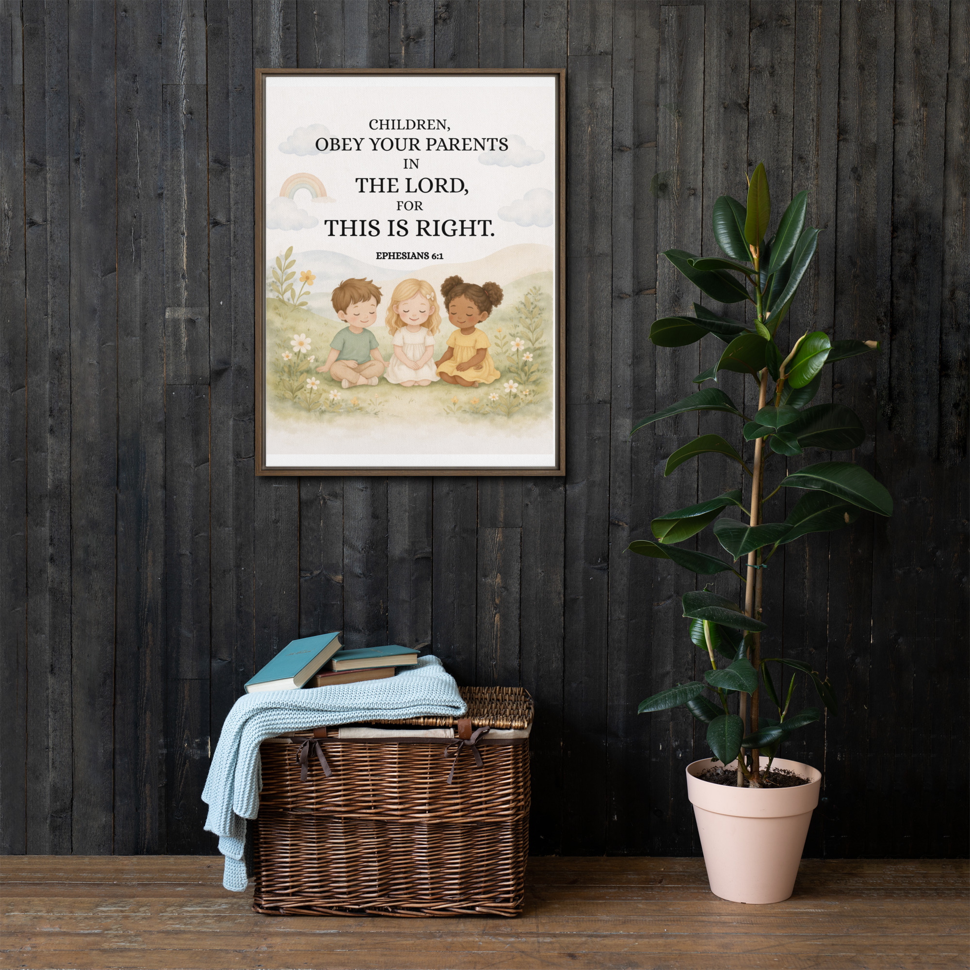 Christian Children Room Wall Art – Bible Verse Framed Canvas (Ephesians 6:1) | Neutral Kids Room Decor |Buy & Gift Your Children | Gifts Occasions: Birthdays, Wedding, Baby Showers, Anniversaries.