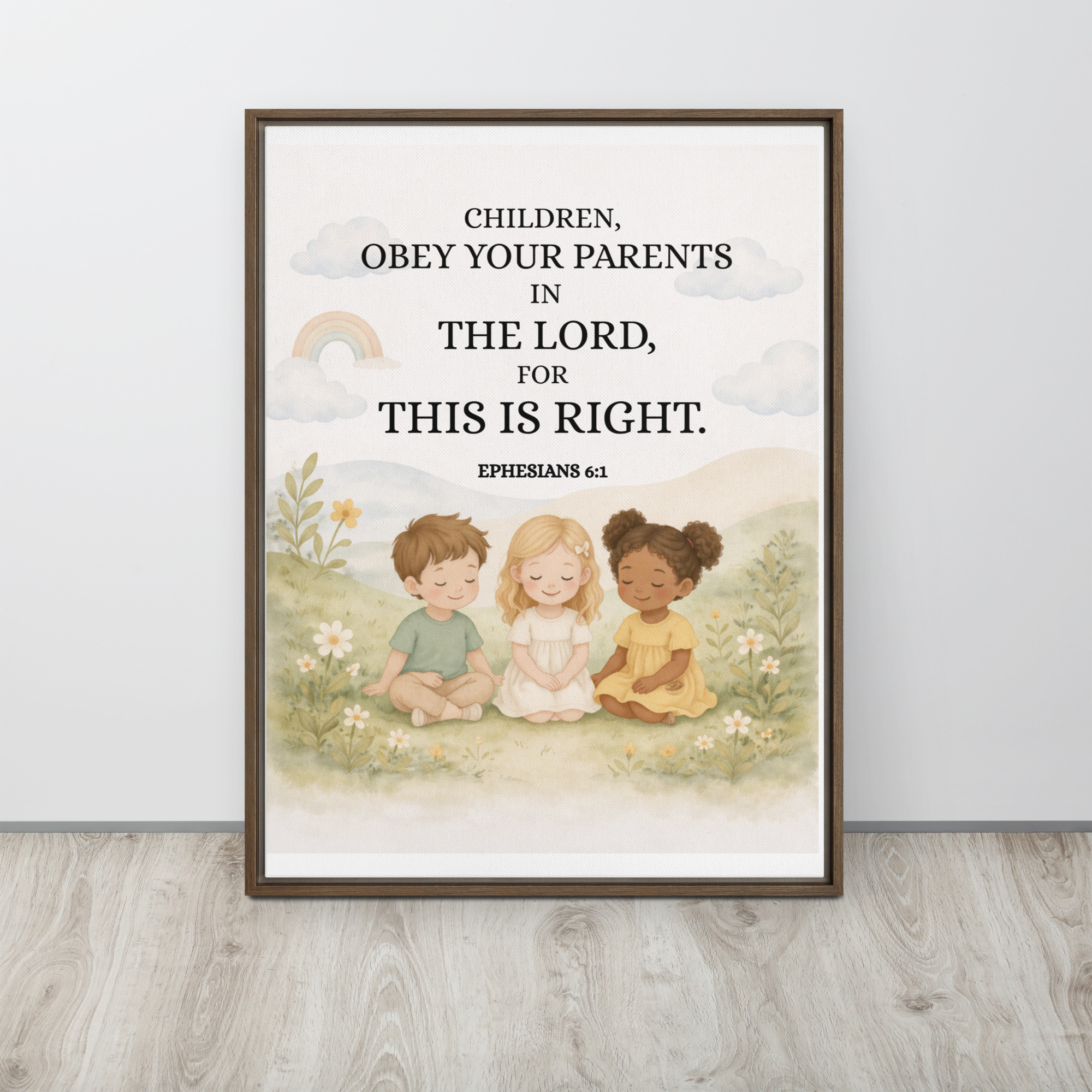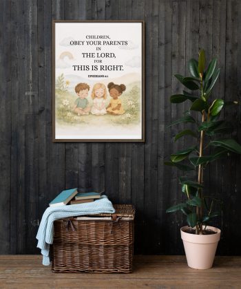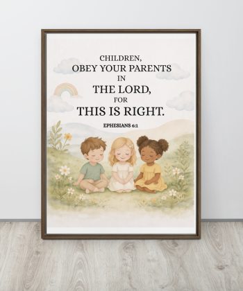 Create a peaceful, faith-filled space for your child with this beautifully designed Christian nursery wall art/Children room  featuring the timeless Bible verse from Ephesians 6:1. Thoughtfully crafted in soft neutral tones and gentle pastel colors, this artwork brings warmth, comfort, and spiritual meaning into your baby’s room, toddler space, or children’s bedroom.