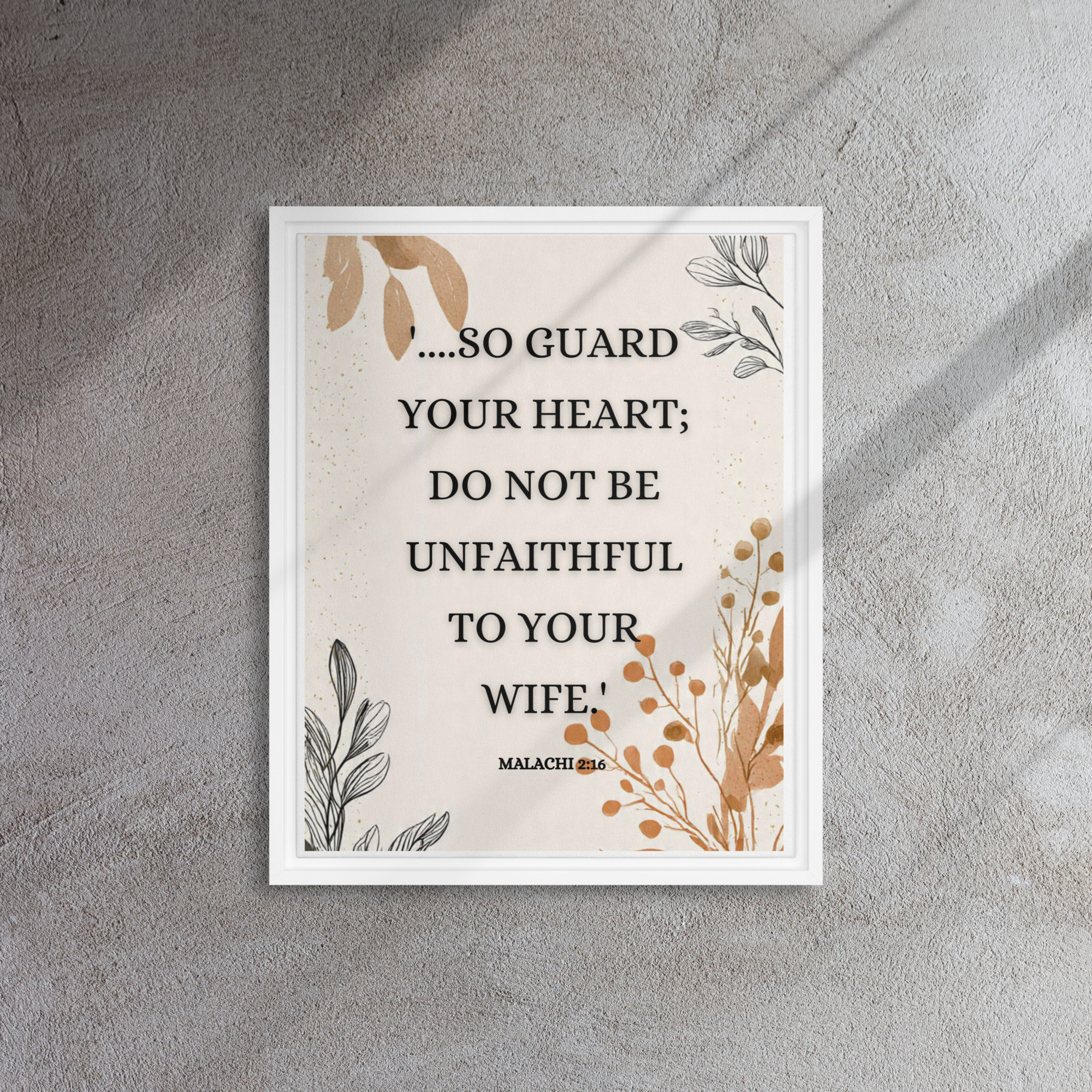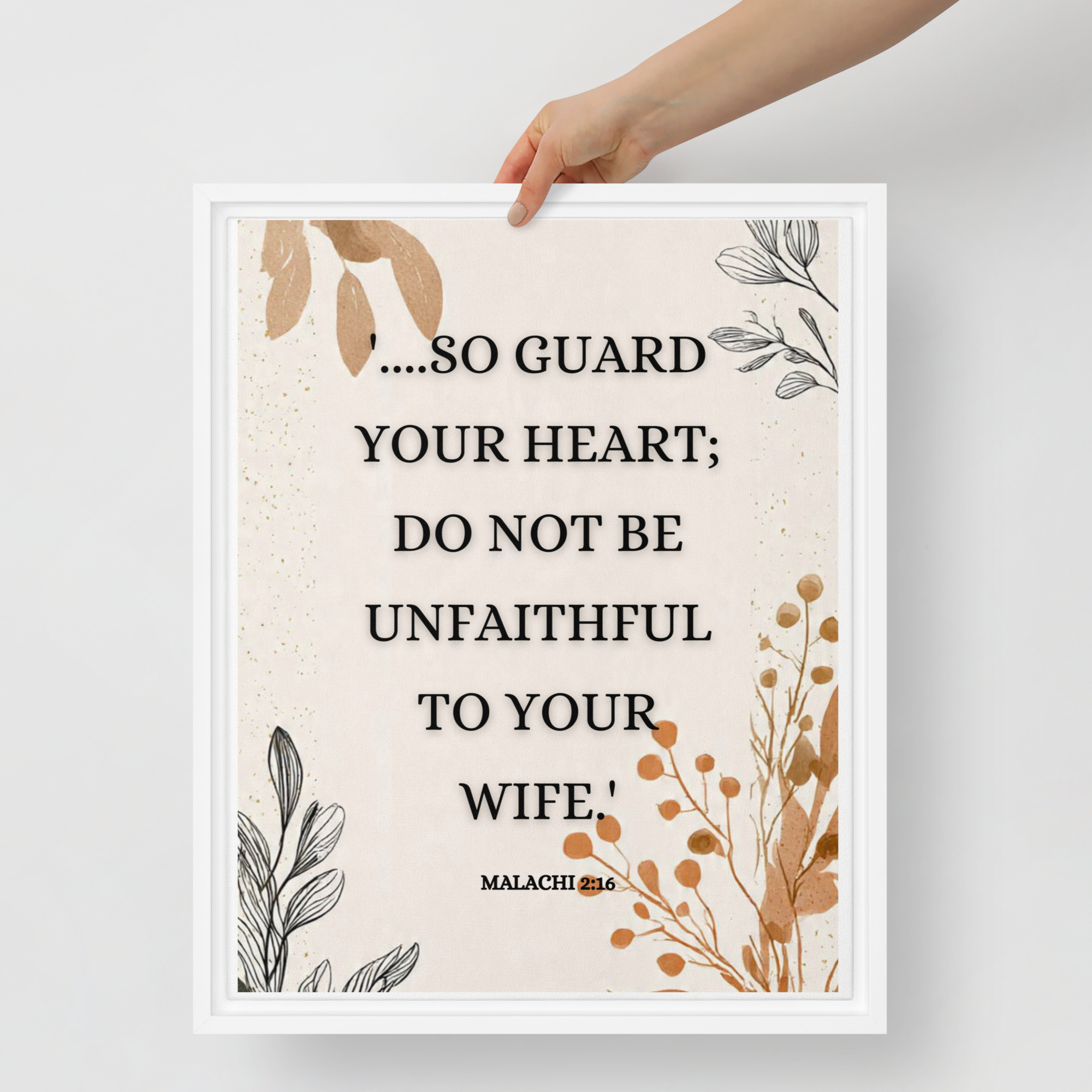 Be the first to review “Christian Framed Canvas Bedroom Wall Art – Malachi 2:16 Scripture Canvas | Marriage Bible Verse Print | Faith-Based Couple Gift | Neutral Aesthetic Christian Decor”