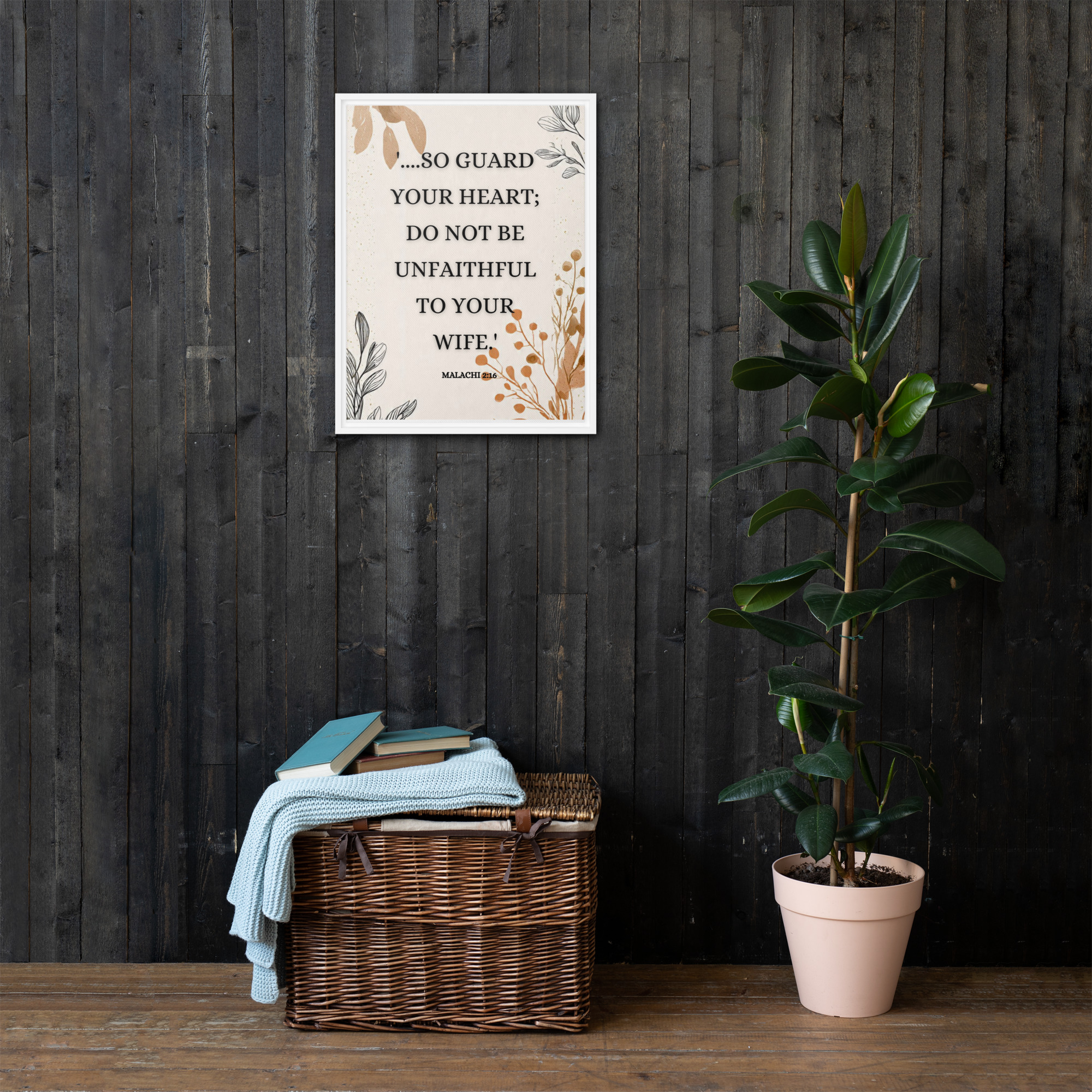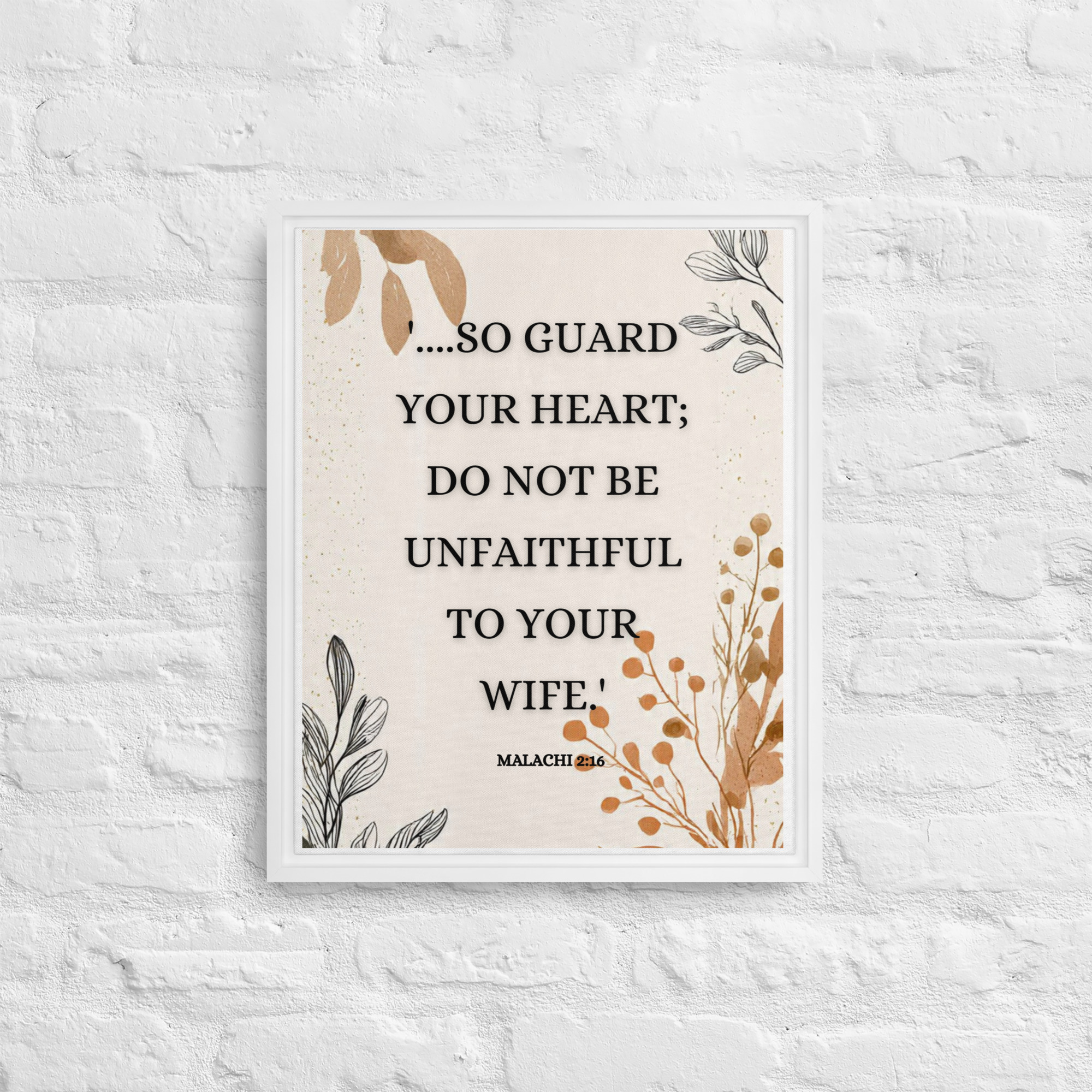 Christian Framed Canvas Bedroom Wall Art – Malachi 2:16 Scripture Canvas | Marriage Bible Verse Print | Faith-Based Couple Gift | Neutral Aesthetic Christian Decor