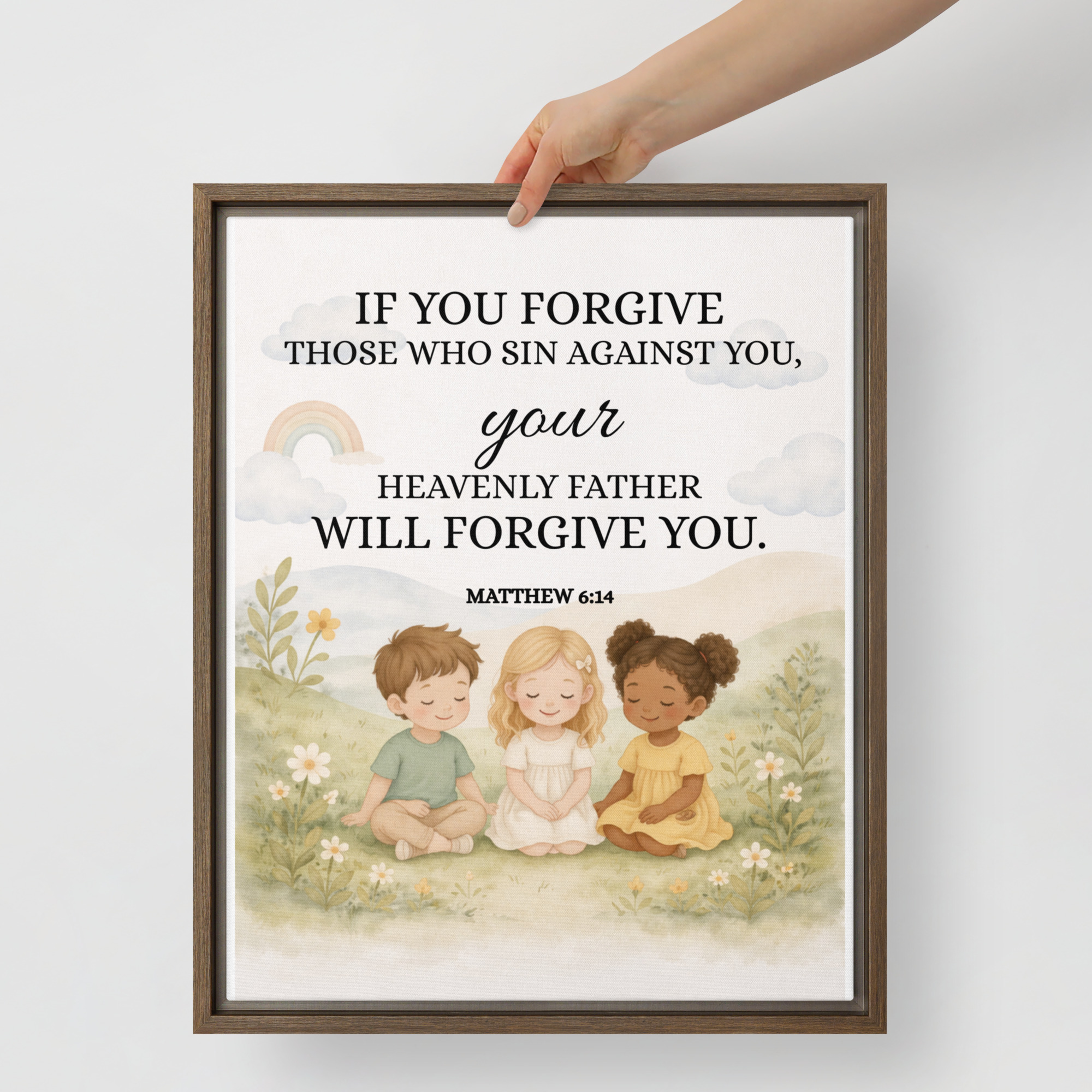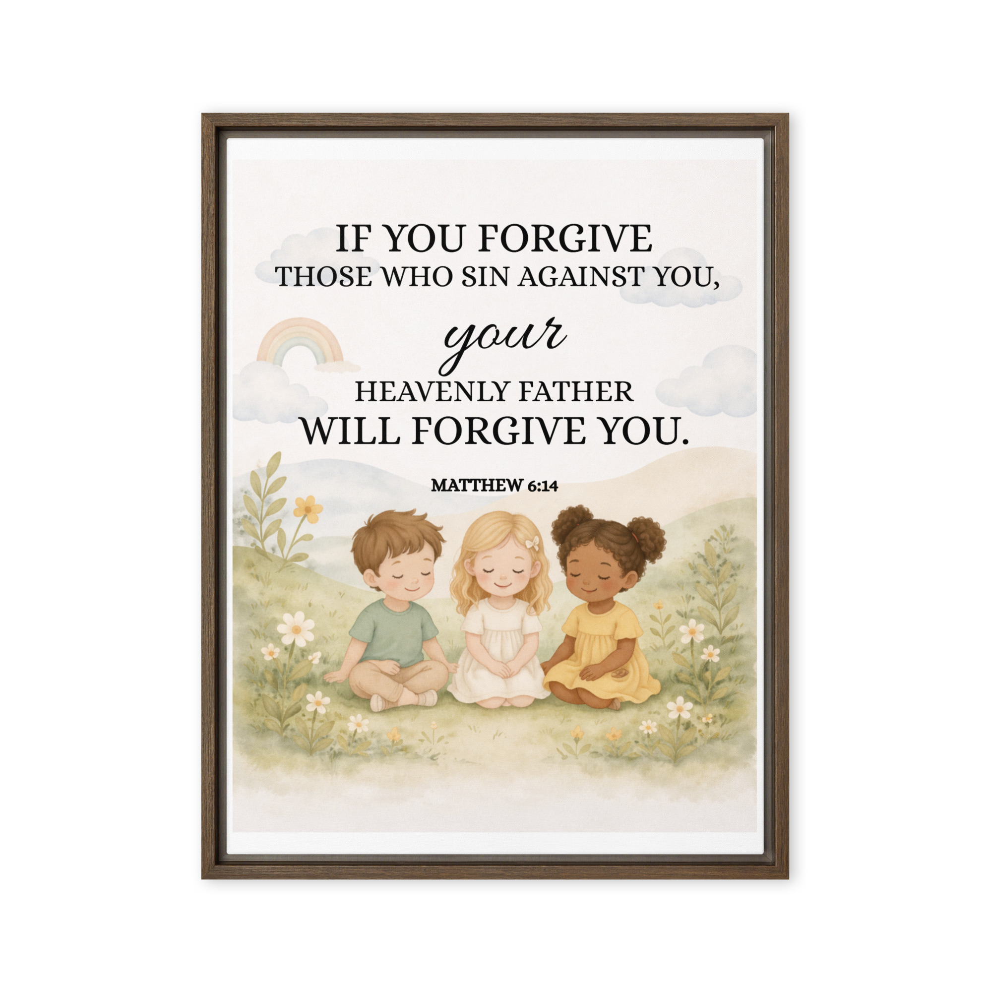 – The framed canvases with brown and black frames have a black inside around the canvas, and the canvases with white frames have a white inside around the canvas.